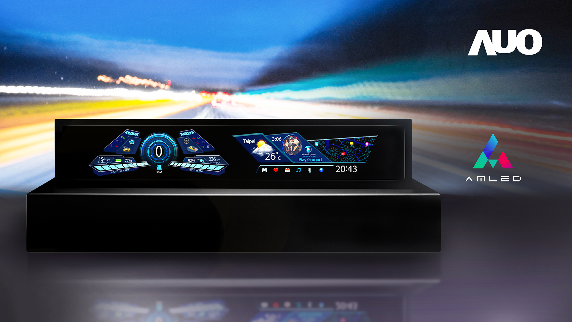 AUO applies proprietary AmLED technology to large-size future automotive displays, materializing the vision of a smart cockpit