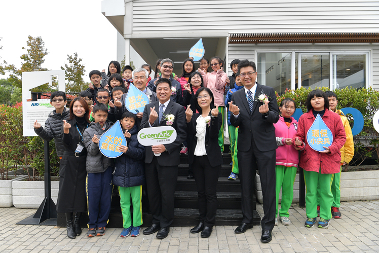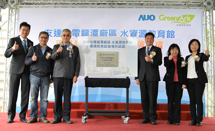 AUO announced “AUO GreenArk” at Longtan Site was certified as an environmental education facility by the Department of Environmental Protection and hosted its inauguration ceremony today (12). Through refining the results of water recycling into systematic courses of environmental education and the cultivation of professional teachers and volunteers from enterprises, AUO GreenArk provides a learning field of environmental education for elementary school students. After its Taichung Plant acquired the first certification of environmental education facility in 2014, the certification of GreenArk at Longtan Site makes AUO the only technology company(*) possessing two sites showcasing environmental education in Taiwan. AUO actively connects local resources and teams with the neighborhood to promote environmental education and deeply root this concept in the next generation.