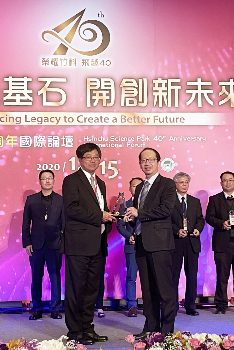 友達榮獲「2020 年竹科優良廠商創新產品獎」,由友達技術長廖唯倫 (右) 代表領獎