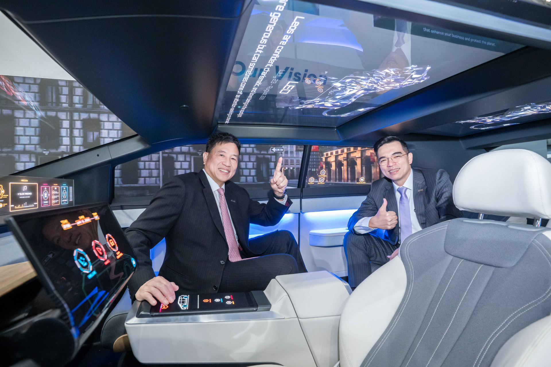 BHTC發揮多年HMI設計經驗,帶來Micro LED可折疊觸控顯示器,整合中控台與溫度控制功能,前衛簡潔的設計美學提升空間效率與舒適性,主動觸覺反饋亦為駕駛帶來更直覺、安全的使用體驗;HHUD抬頭顯示器則是在單一模塊結合AR-HUD與PHUD功能,達到性能最大化亦富含設計美學,高達5000nits的螢幕亮度在強光下仍清晰可見,提供兼具安全與沉浸式的駕駛體驗。